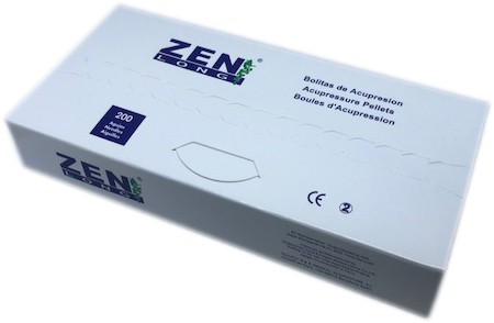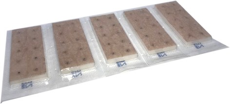 Semillas de Vaccaria Segetalis para acupresión, con adhesivo hipoalergénico de papel color beige.